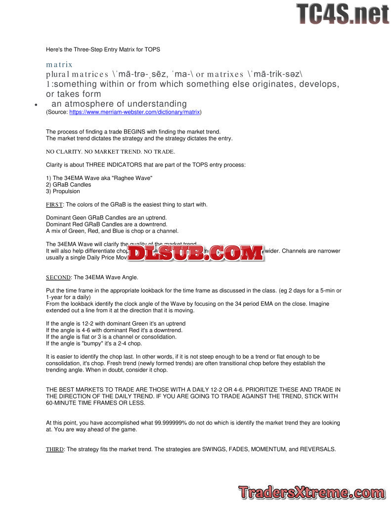 Tops Trade Matrix Chart Set Ups