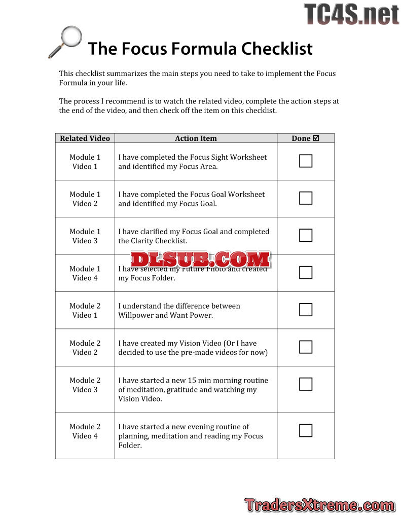 The Focus Formula Checklist - JPG Image File