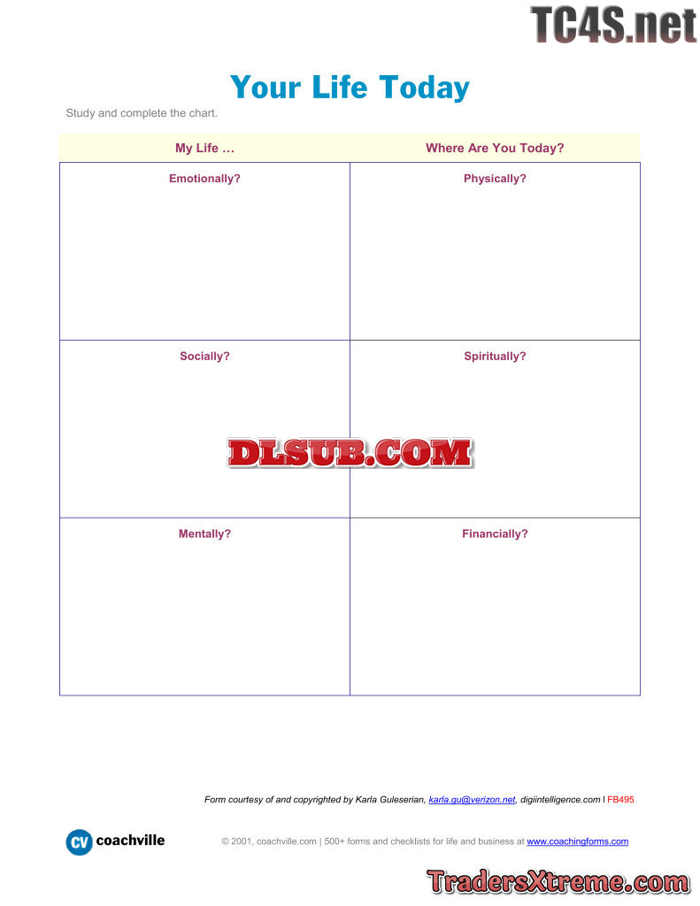 Chart For Evaluating Your Current Life In Six Areas - JPG Image File
