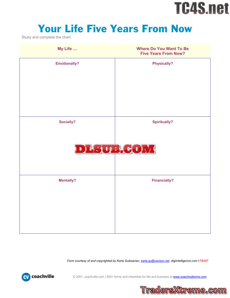 Chart For Evaluating Your Life In Six Areas Five Years From Now - JPG Image File