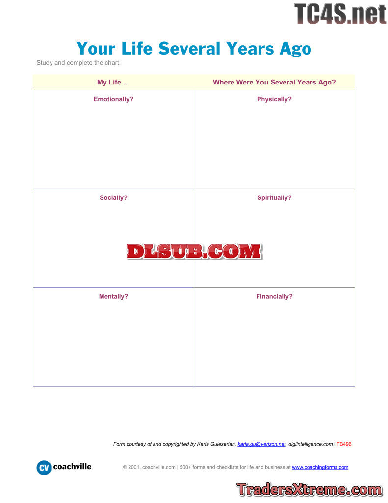 Chart For Evaluating Your Life In Six Areas Several Years Ago - JPG Image File