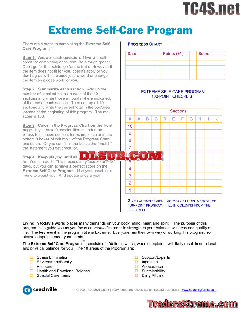 Extreme Self Care Program 100 Items To Achieving Emotional And Physical Balance - JPG Image File