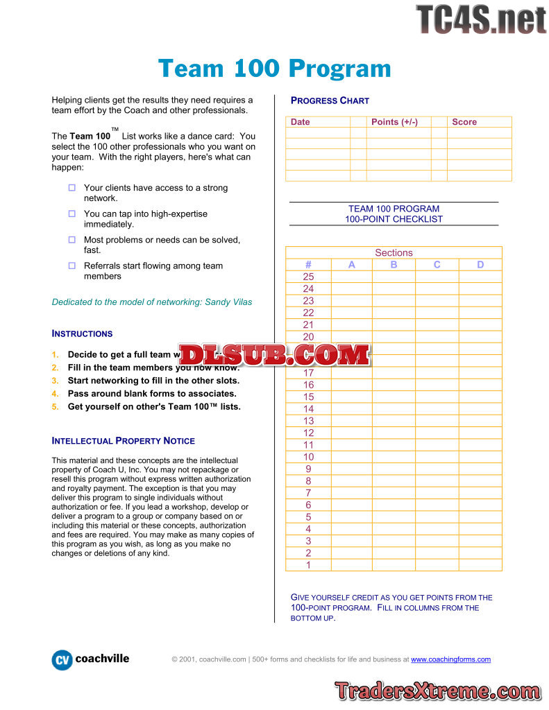 Team 100 Program Worksheet For Listing 100 Professionals For The Results You Need - JPG Image File