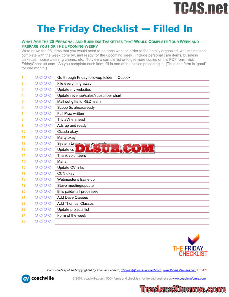 Worksheet To Determine 25 Taskettes That Would Make You Feel Totally Organized Filled In Sample - JPG Image File