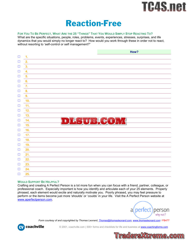 Worksheet To Determine 25 Things You Need To Stop Reacting To - JPG Image File