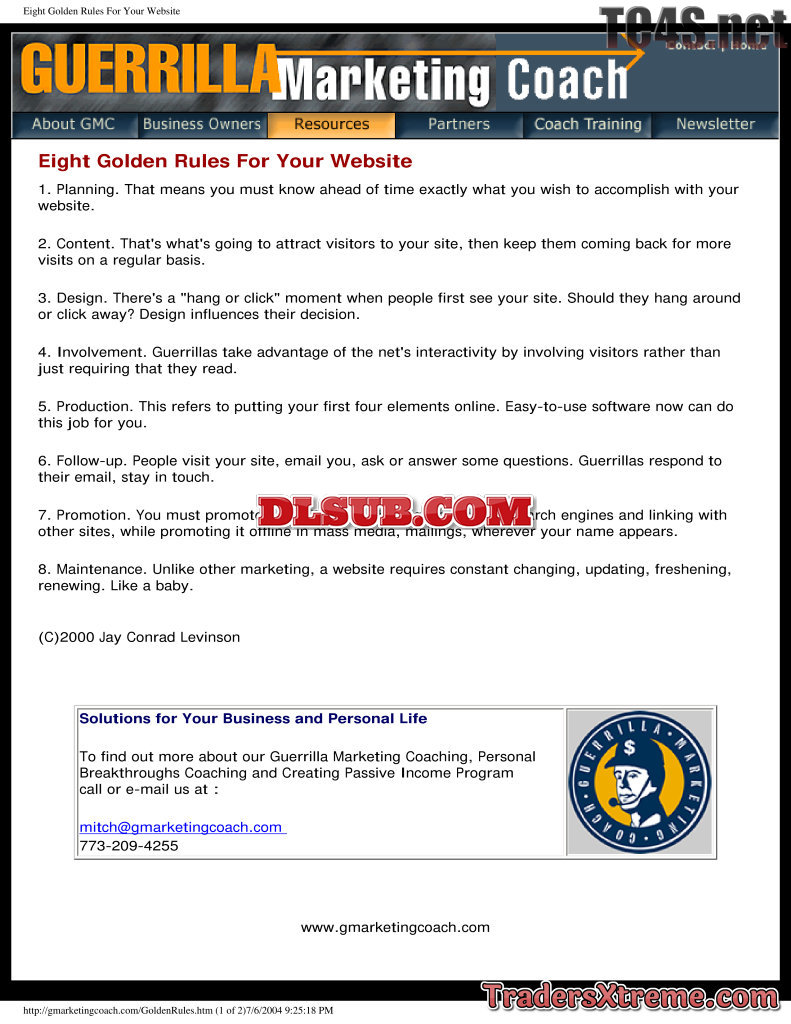 Guerrilla Marketing Articles Eight Golden Rules For Your Website - JPG Image File