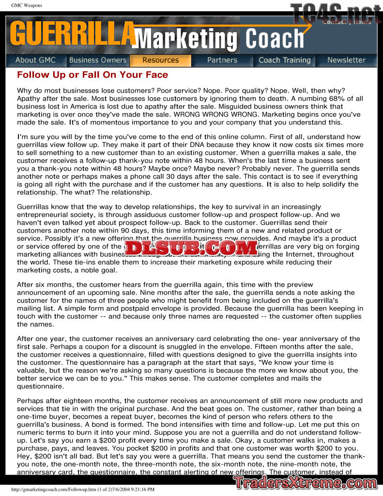 Guerrilla Marketing Articles Follow Up Or Fall On Your Face - JPG Image File