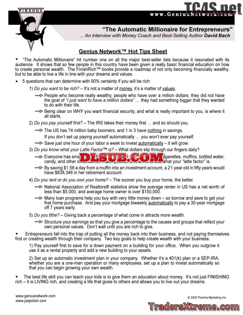 Genius Network David Bach Hot Tips Sheet - JPG Image File