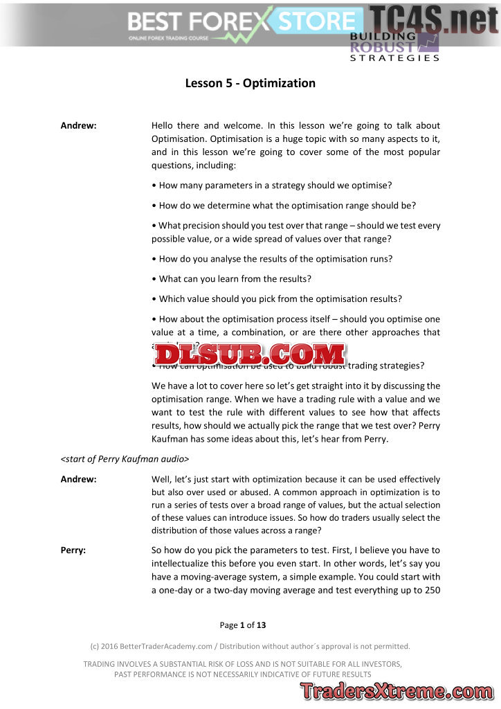 Bonus #4 Building Robust Strategies Short Course