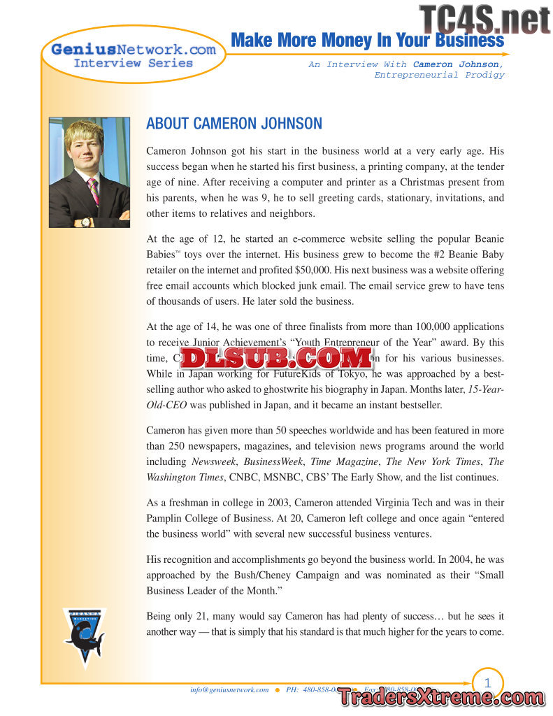 Genius Network Interview Cameron Johnson 2008 - JPG Image File