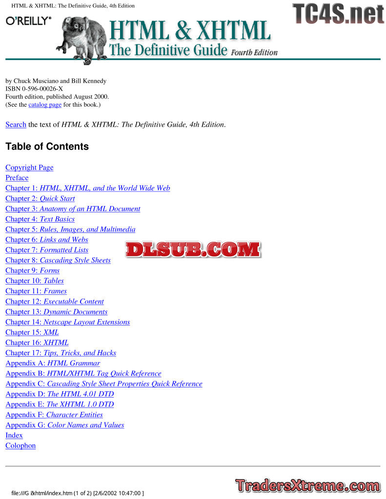 Oreilly Html And Xhtml The Definitive Guide 5th Edition - JPG Image File