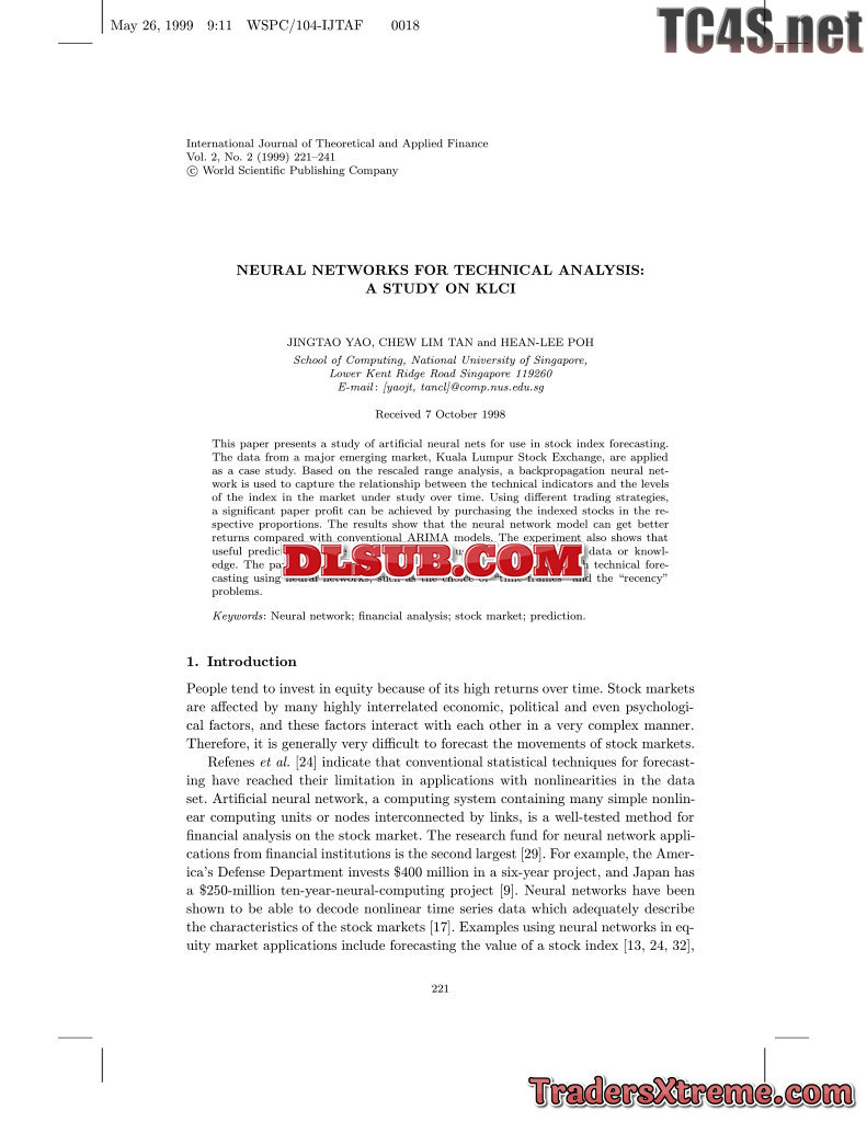 Jingtao Yao Chew Lim Tan And Hena Lee Poh Neural Networks For Technical Analysis